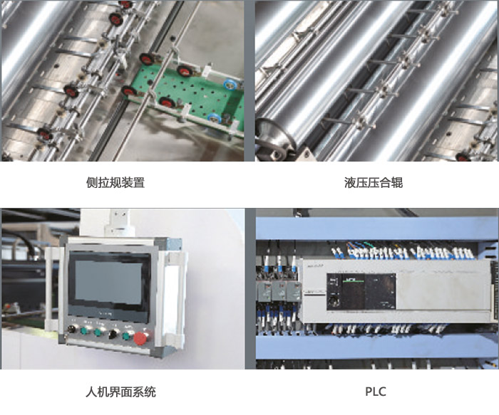 5.壓力輥由自動液壓系統(tǒng)控制進(jìn)行壓合,壓力穩(wěn)定,產(chǎn)品貼合牢固、平整、美觀.